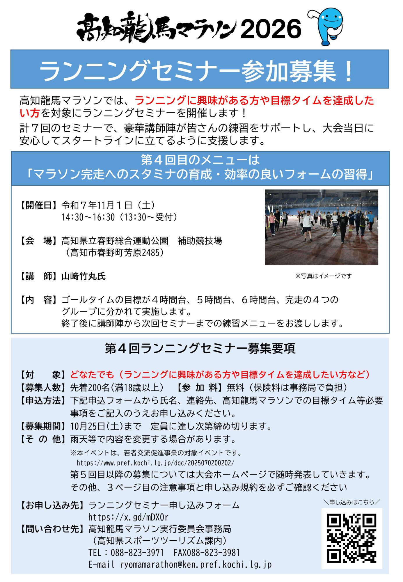 高知龍馬マラソン2026 第4回ランニングセミナー参加者募集!