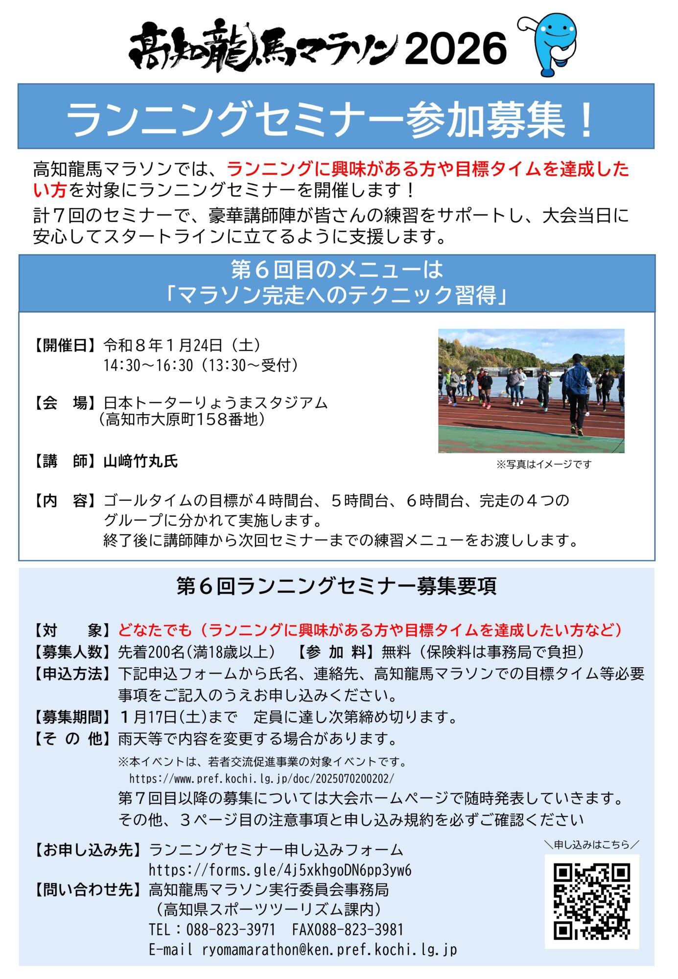 高知龍馬マラソン2026 第6回ランニングセミナー参加者募集!