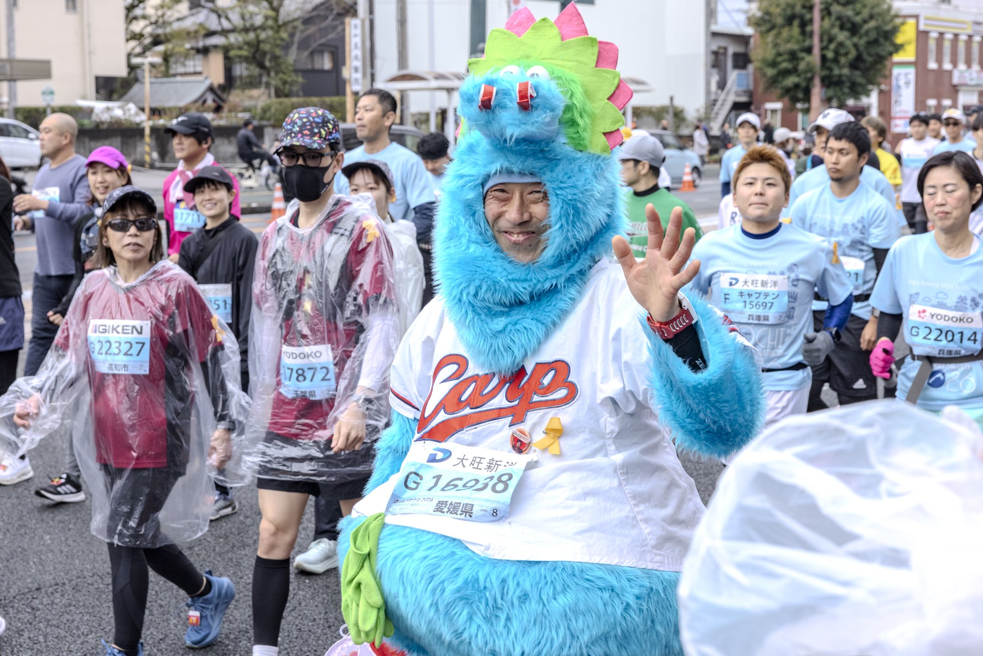 高知だいすきポケモン「ヌオー」によるスタート応援、坂本龍馬像の特別演出、そしてコース各所での地域のおもてなし。