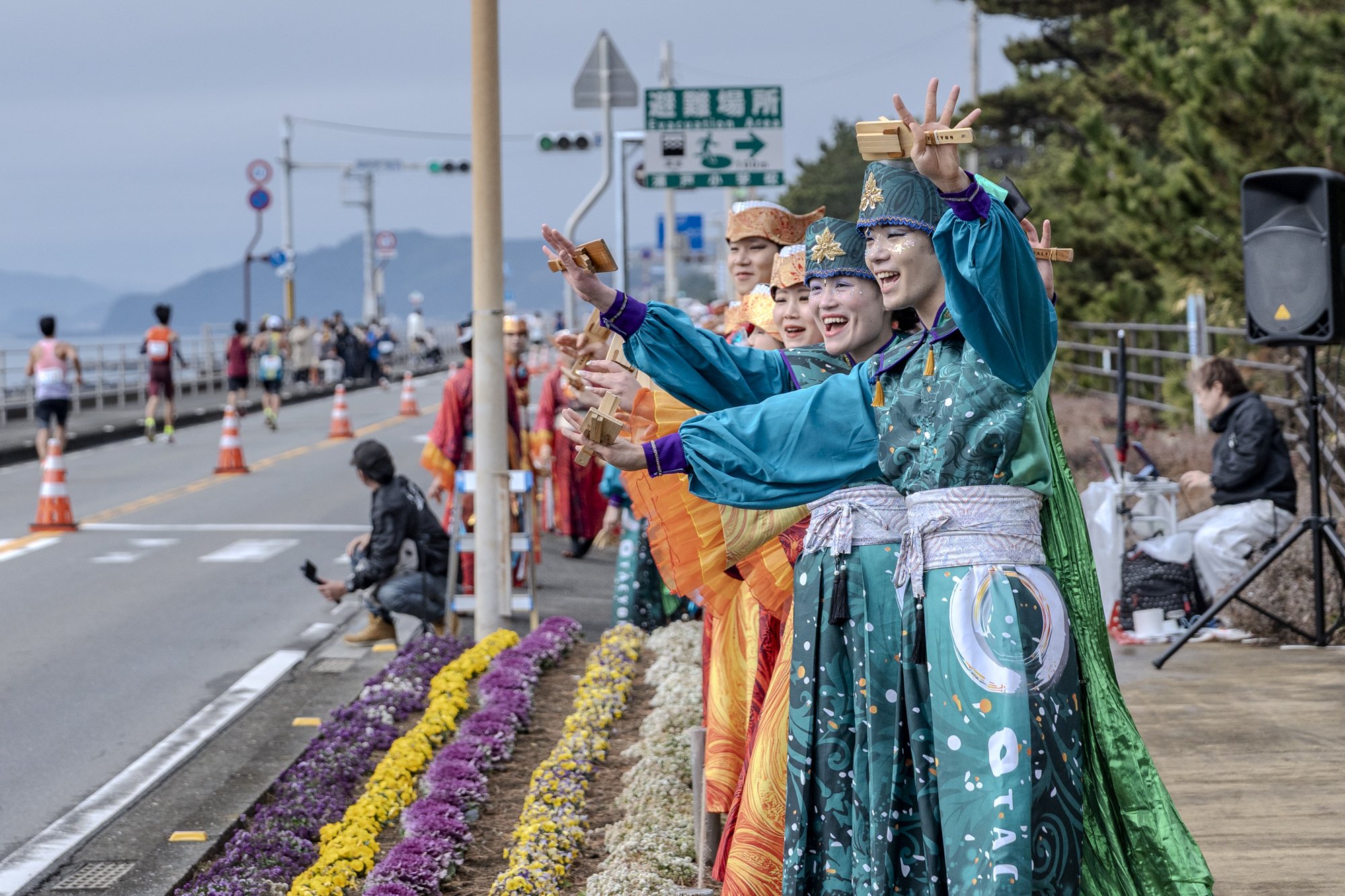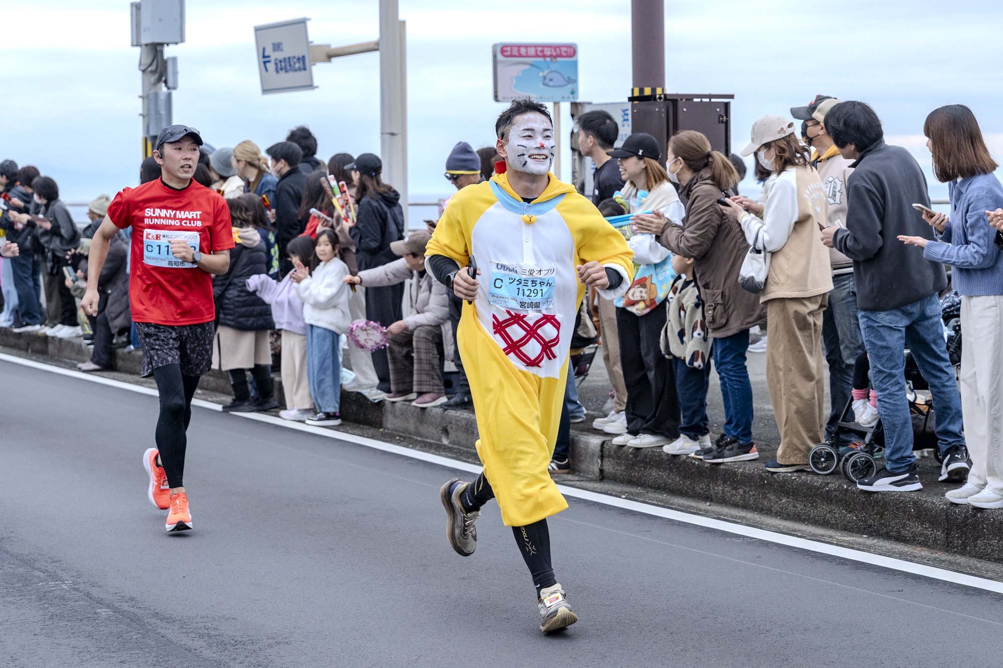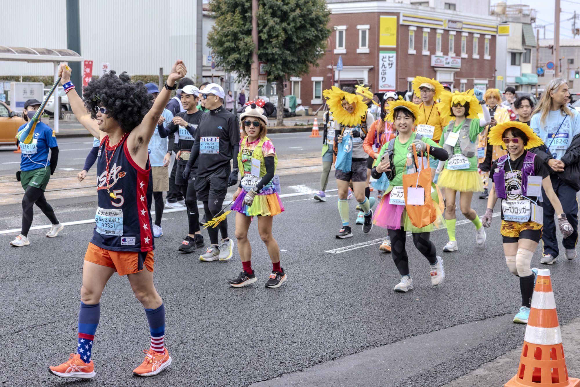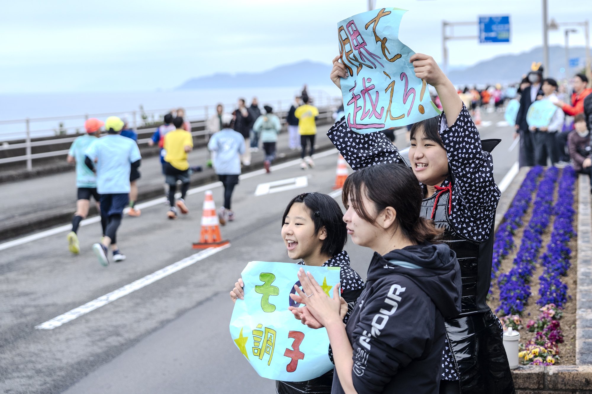 コース沿いでは多くの県民やボランティアが集まり、42.195kmを走るランナーに声援を送り続けます。