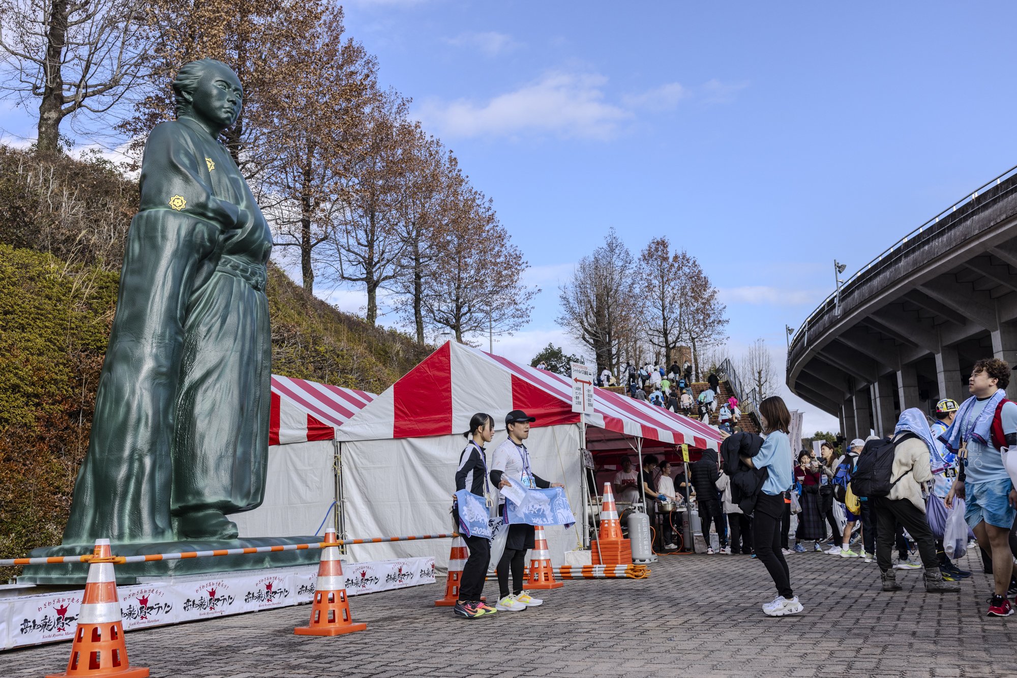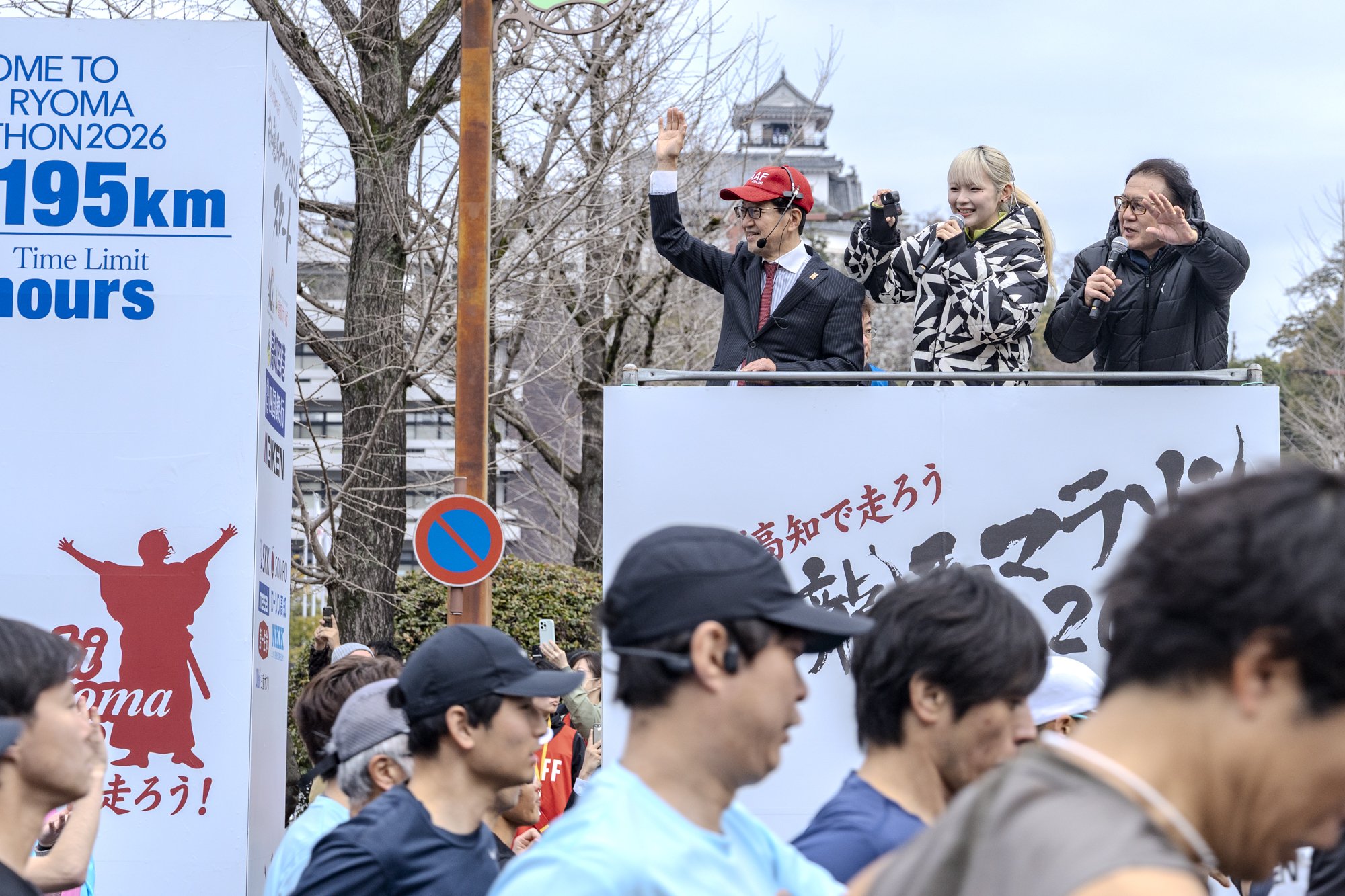 2026年大会では、大会当日限定でこうち旅広場の坂本龍馬像がゴール地点に登場しました。