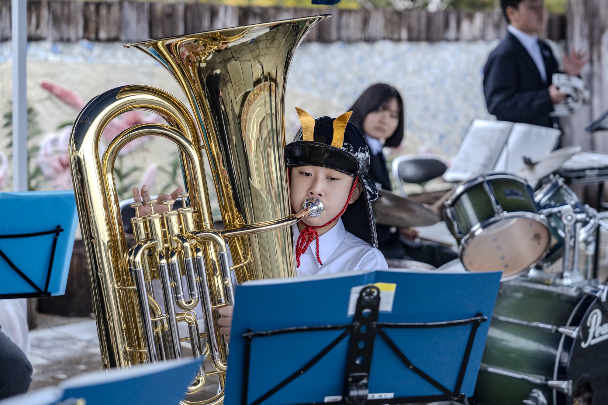 手作りの応援ボード、音楽による応援、子どもたちの元気な声援。