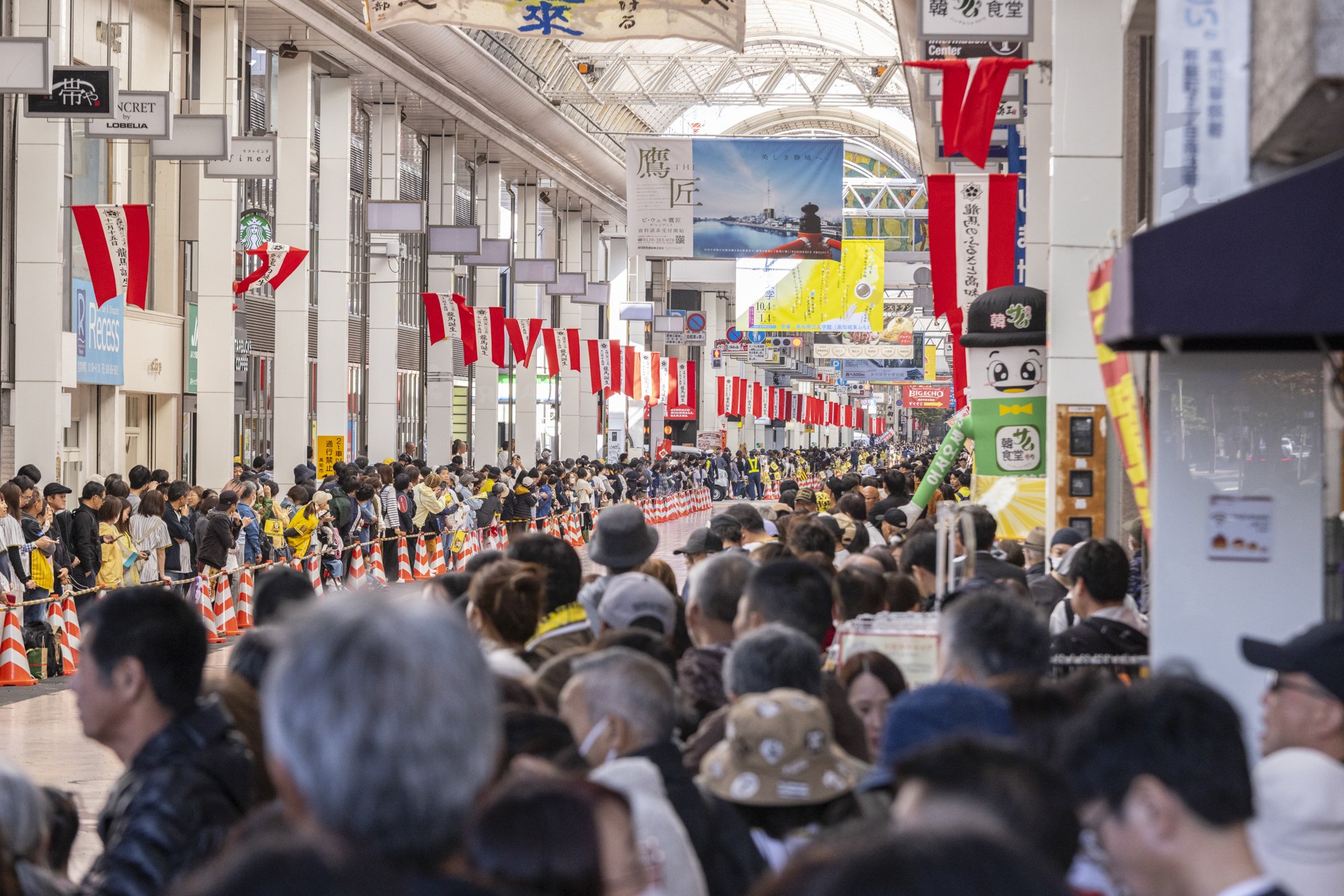 開始1時間前から、すでに帯屋町アーケードは人でいっぱい。