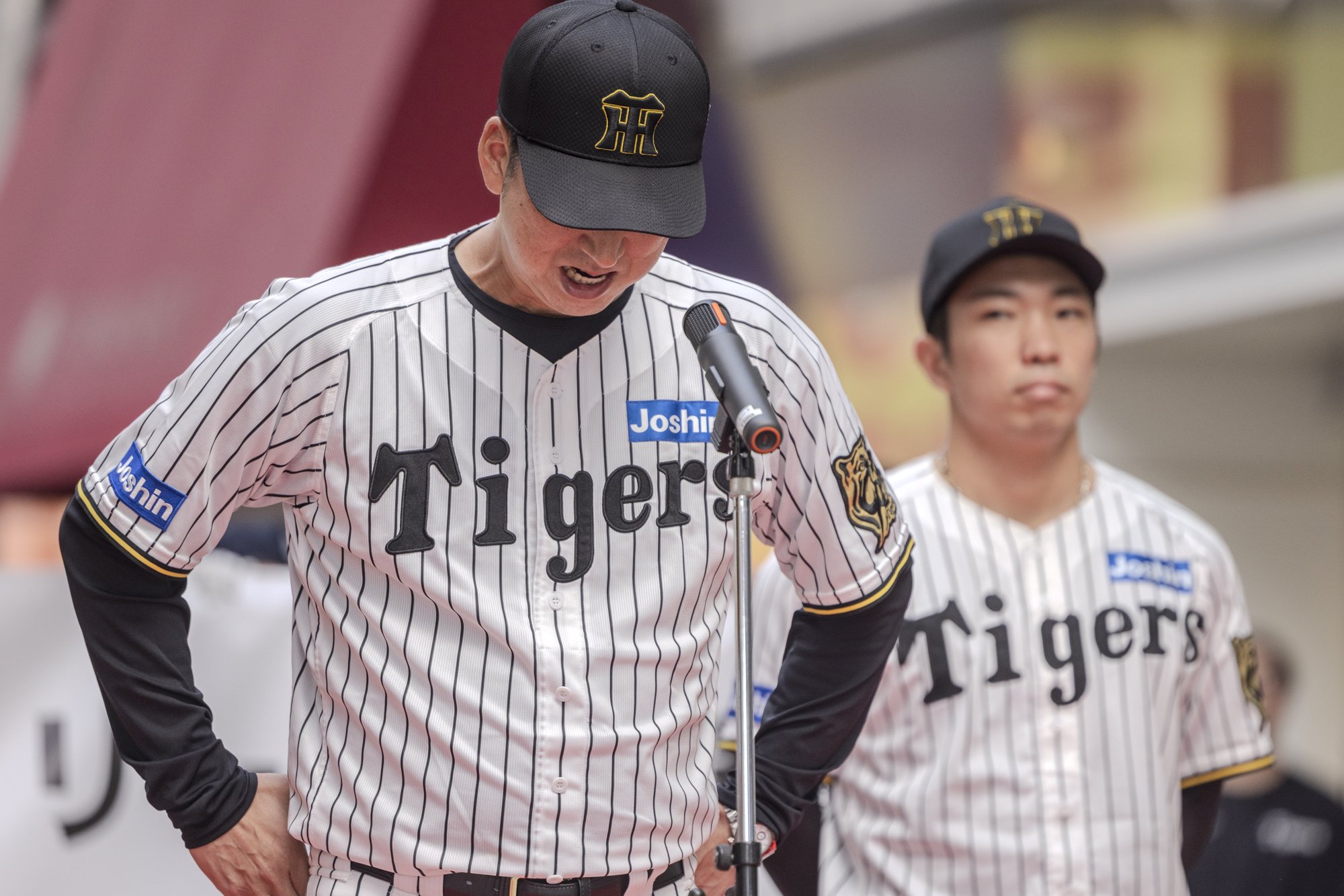 藤川監督は感極まった様子で目には涙を浮かべるも、「今から皆さんの前をパレードをします。恩返し、縁を感じながら今後も頑張っていきます」とあいさつ。