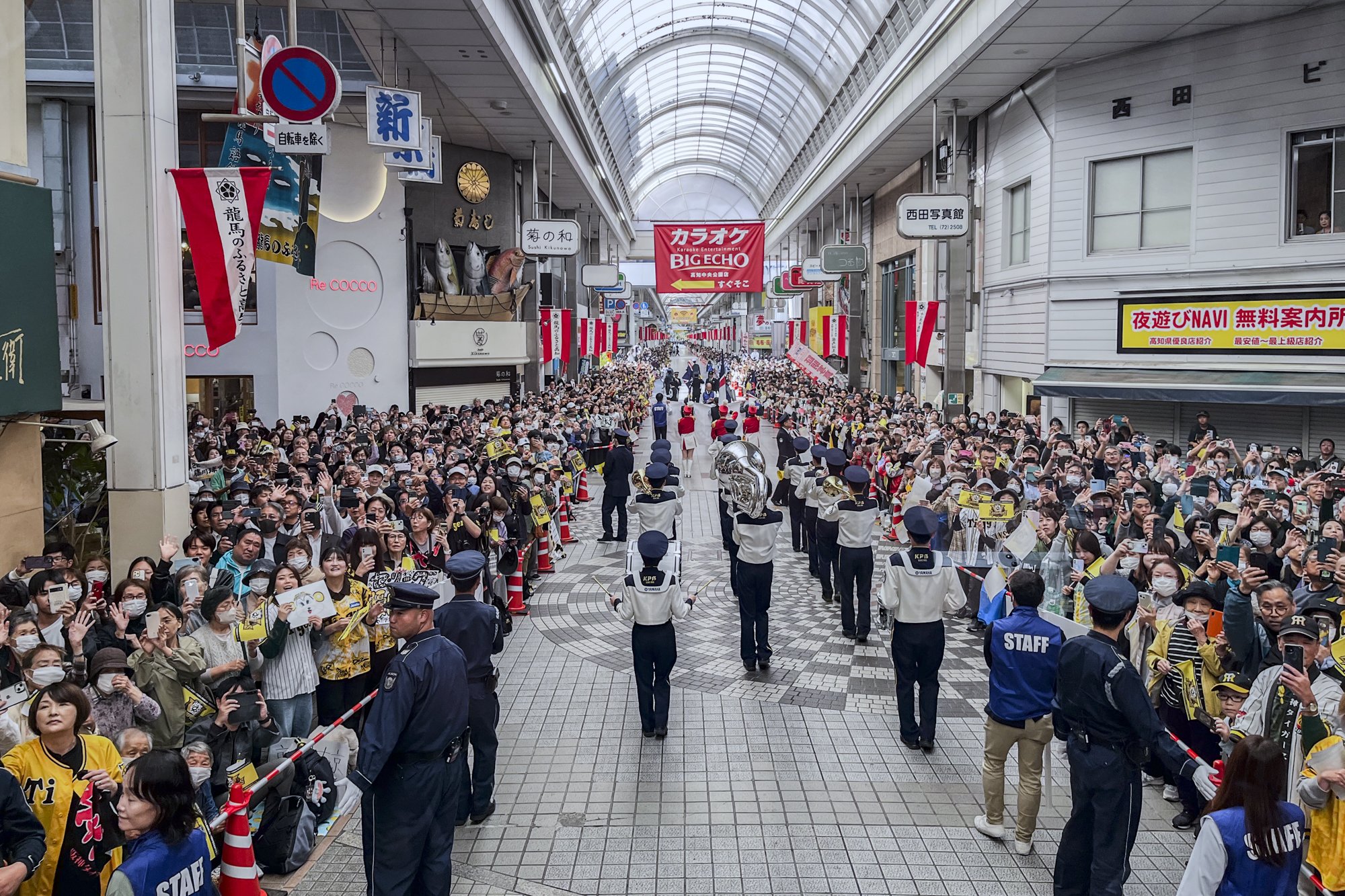 11月10日、高知市の中心街・帯屋町で行われた「高知県阪神タイガース優勝記念パレード」。