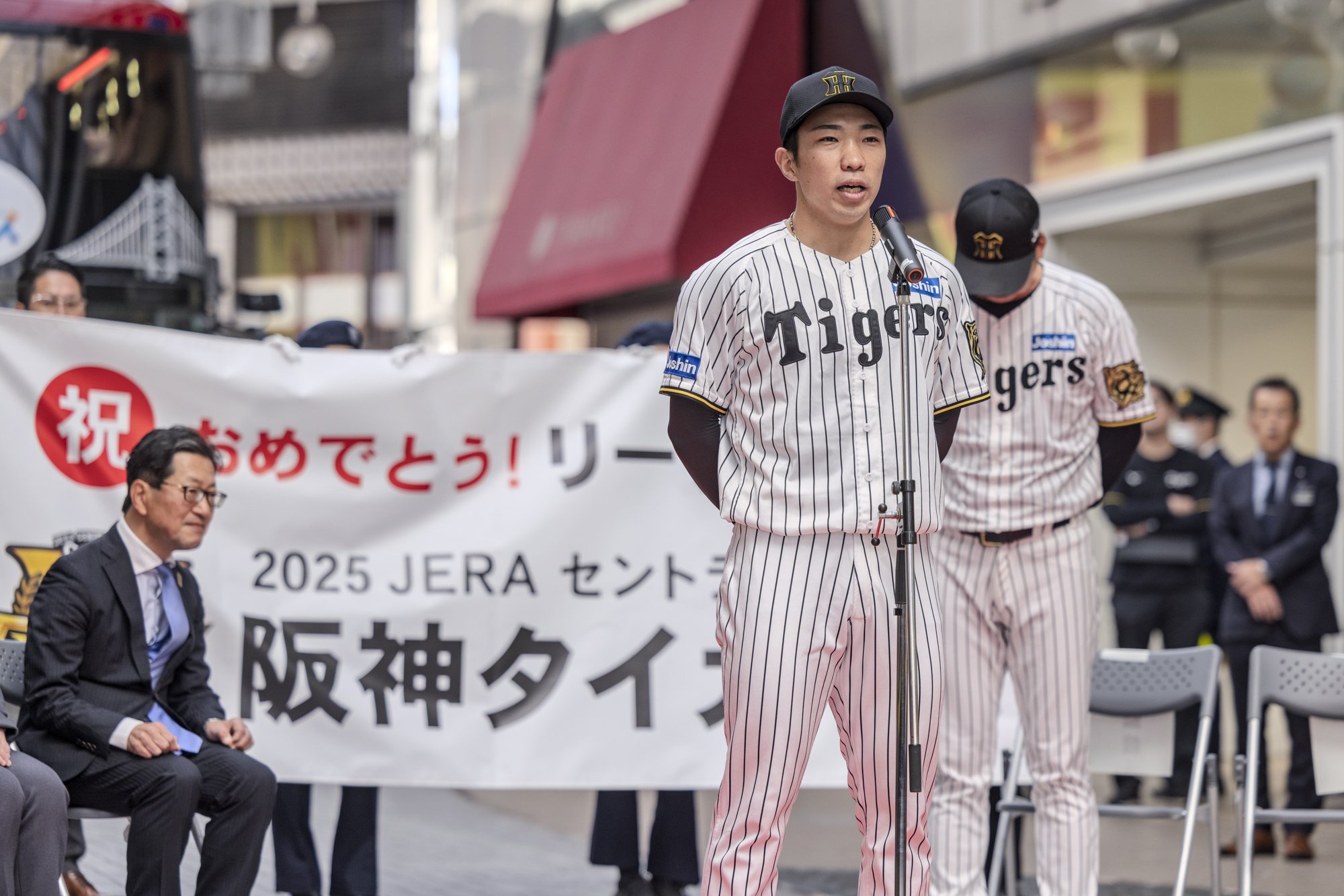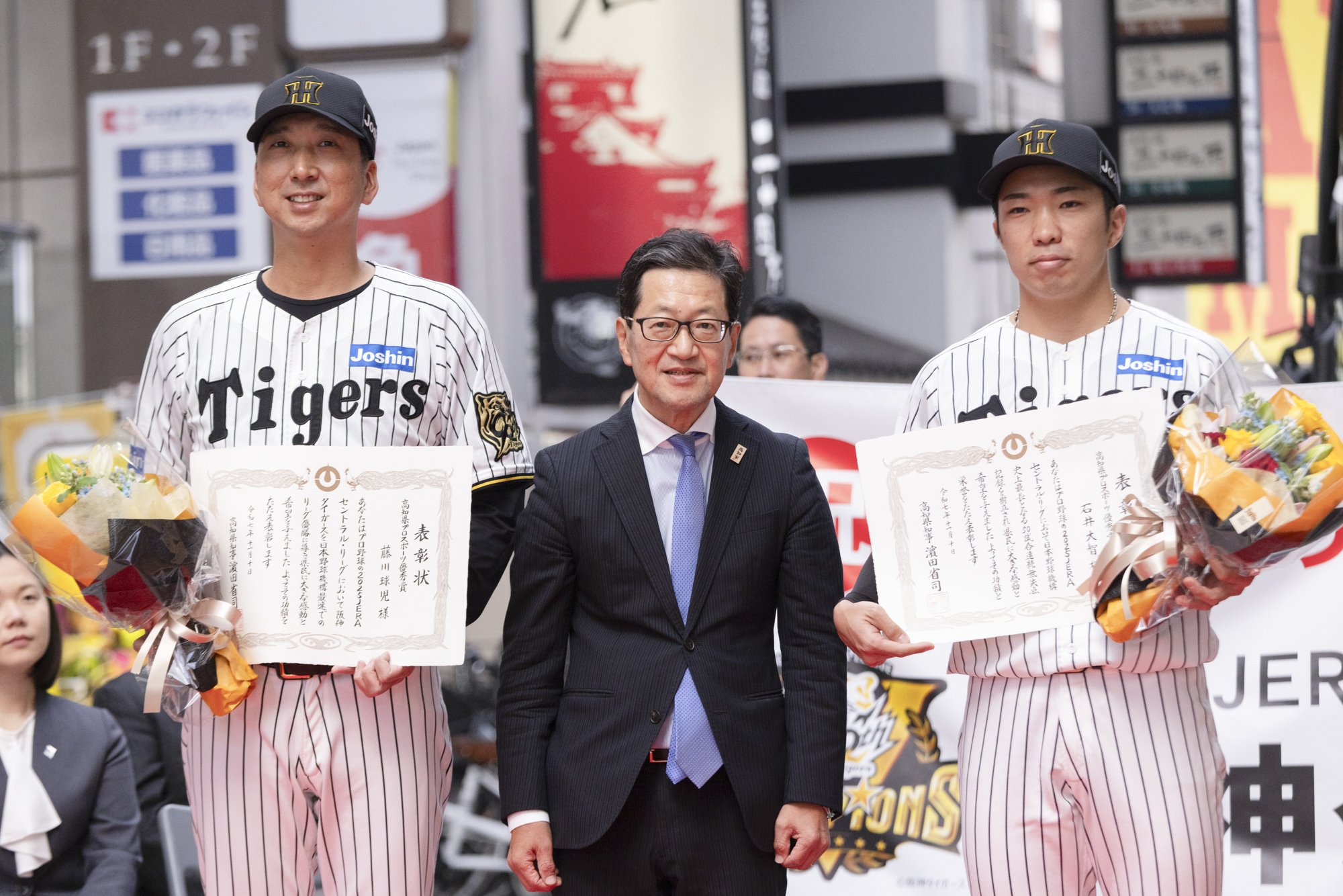 今回は、阪神タイガースの藤川球児監督と石井大智投手の2名が受賞しました。
