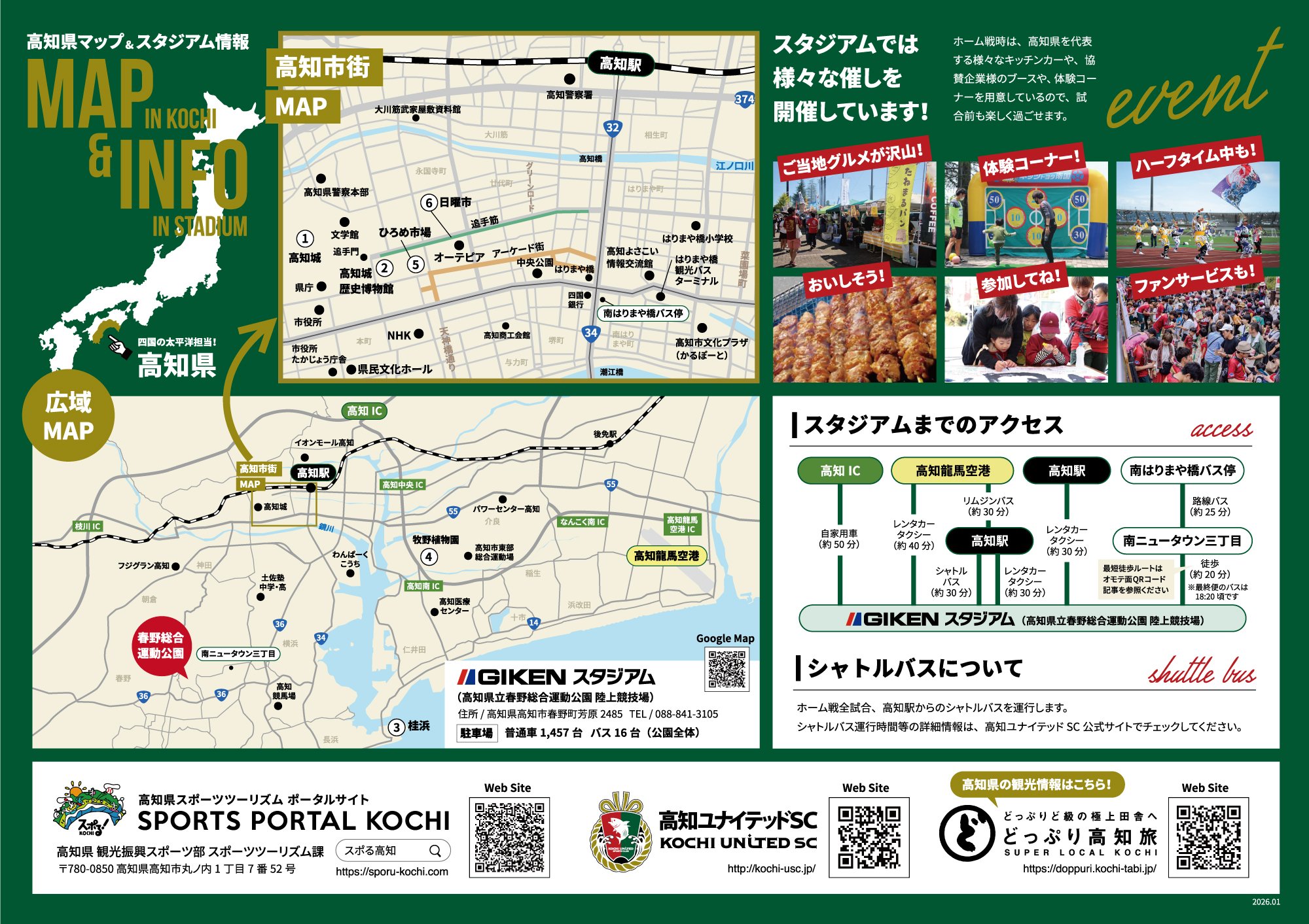 シャトルバス運行のスケジュールや料金、臨時駐車場の有無などは、高知ユナイテッドSC公式サイトで最新情報をご確認ください。