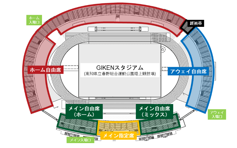 - 全試合高知駅から臨時シャトルバスの運行あり。チケットはオンラインまたは当日のバス乗り場にて購入可能。(詳細はオフィシャルページ内 NEWSにて)