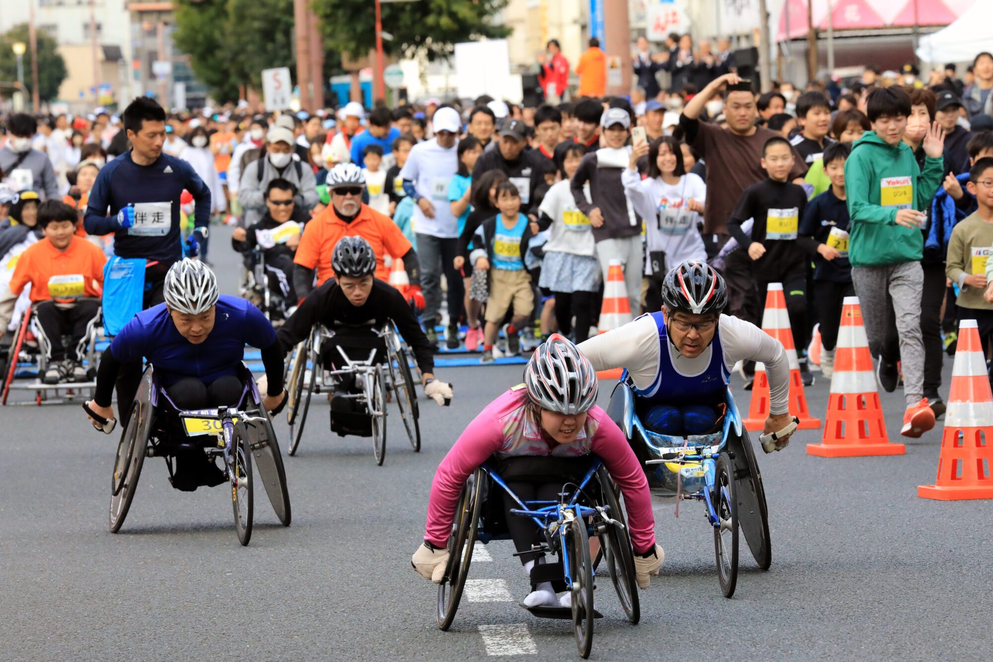 スタート直後のランナーを間近で応援でき、大会の熱気と迫力を存分に体感できる人気スポットです。