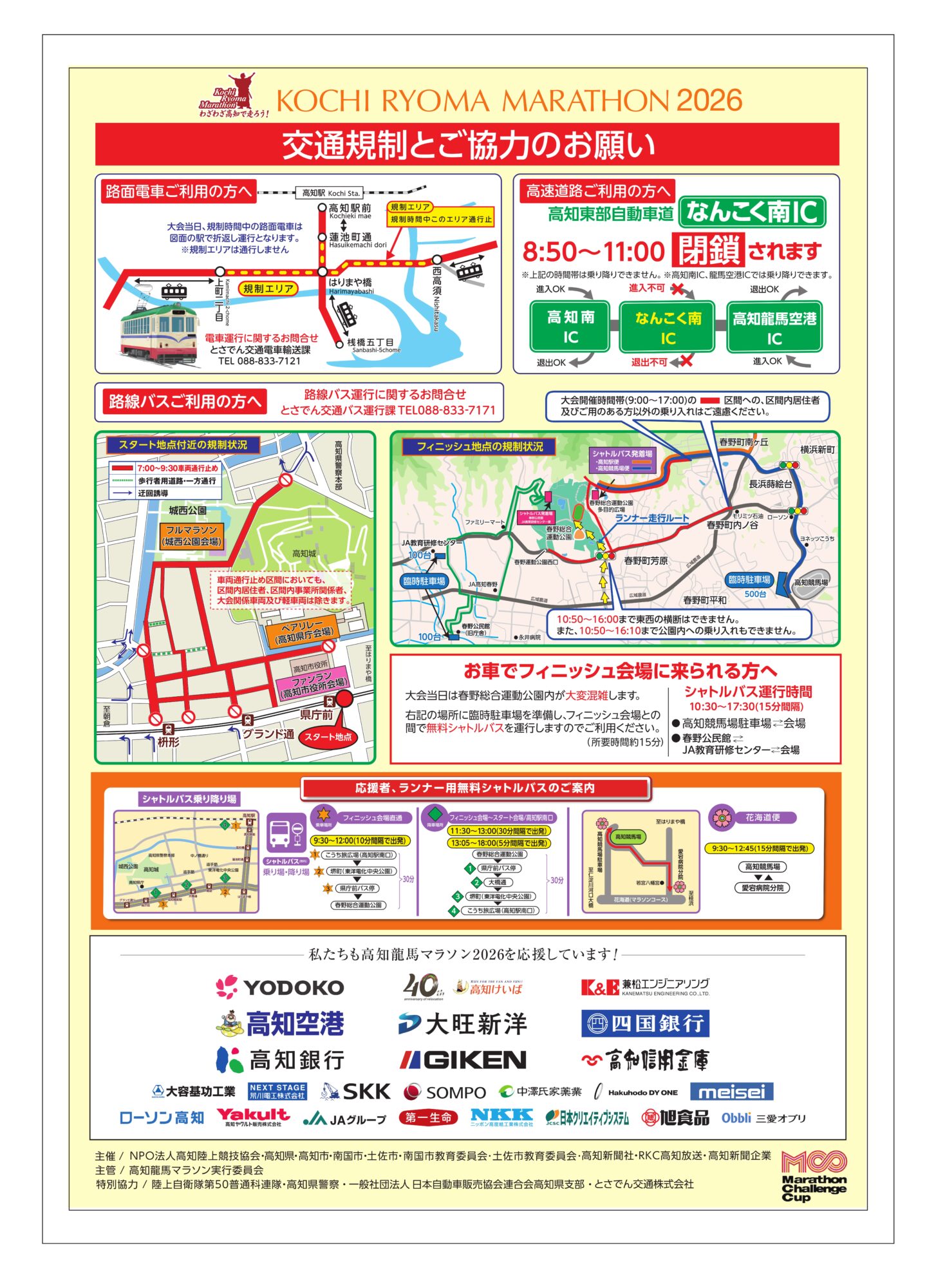 高知駅(こうち旅広場)⇔フィニッシュ会場間でシャトルバスが出ているので、ぜひご利用ください。